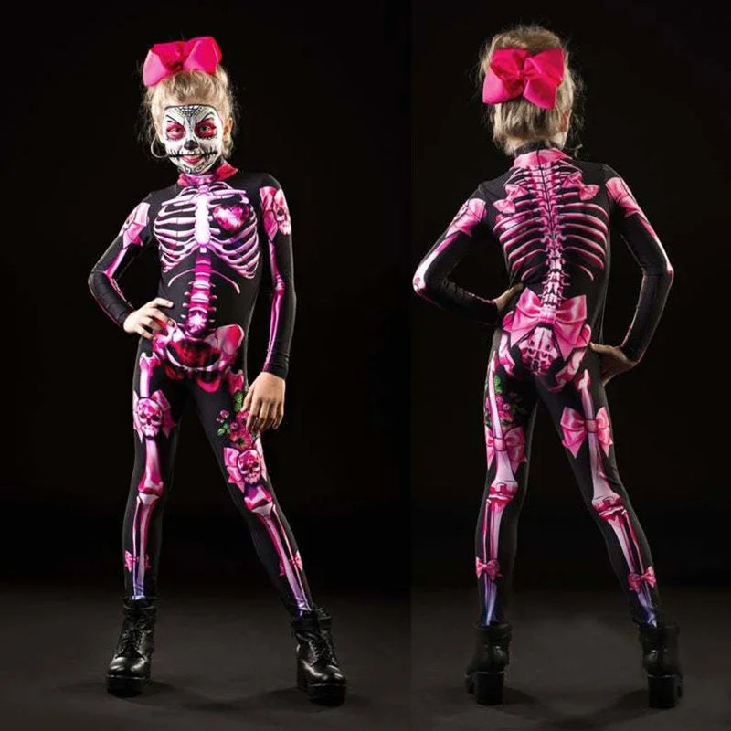 Rose Skeleton Adult & Kids Scary Costume – Sexy Jumpsuit & Baby Girl Rompers for Halloween & Day of The Dead